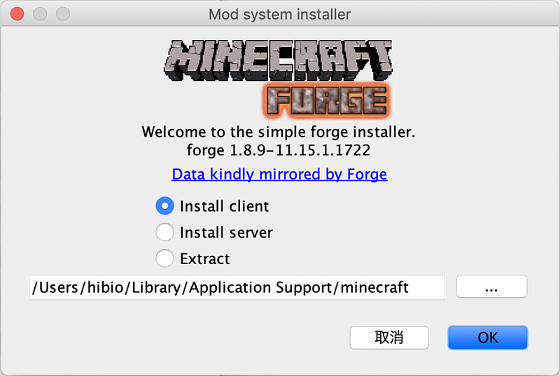 4.ダウンロードした、FORGEのインストーラーを起動します。